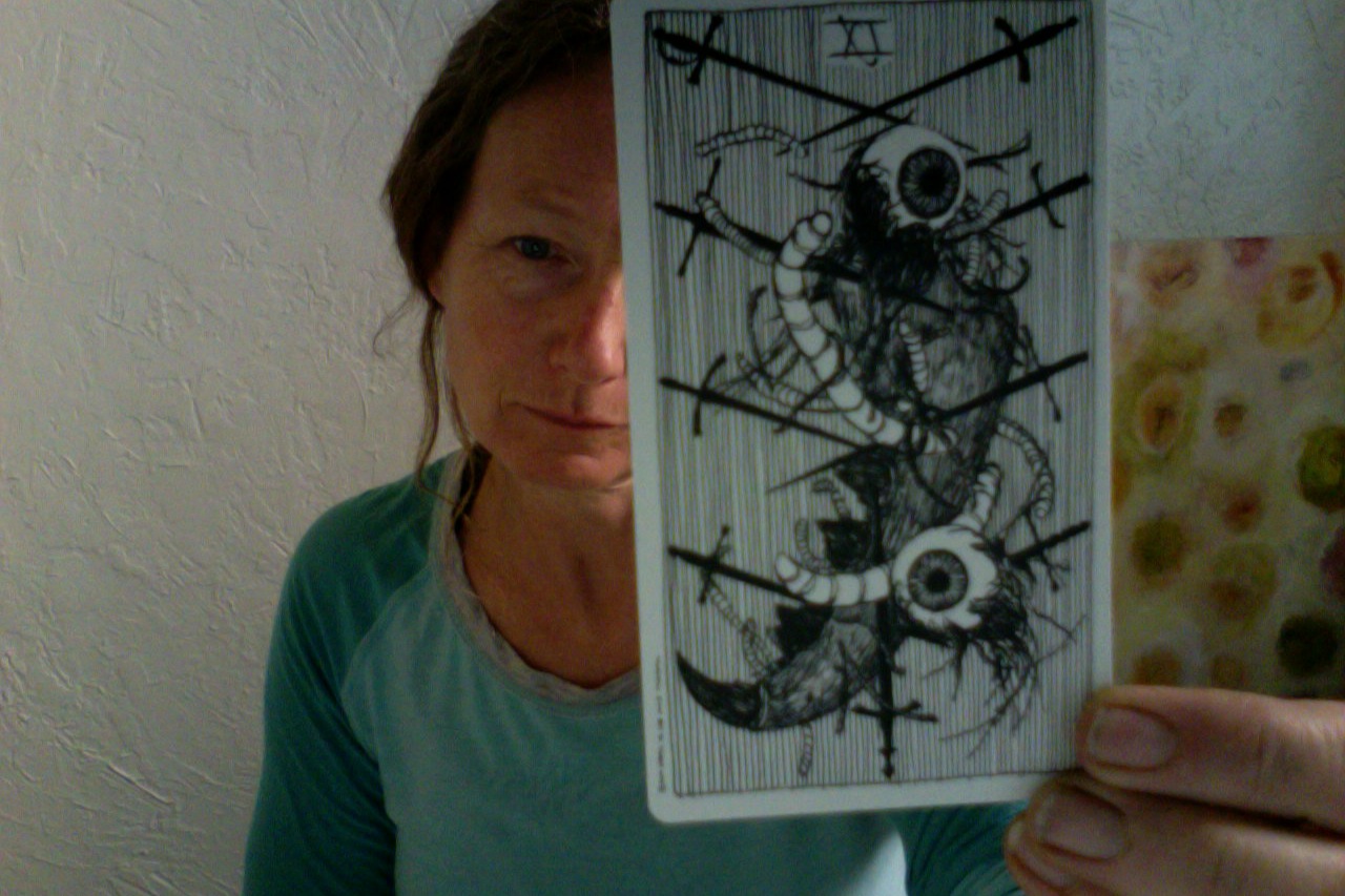 Astrologically, the 9 of swords refers to the planet of Mars in the sign of Gemini. Mars is the planet of action and aggression. Gemini is a sign that is about picking things apart, often into minutae. I find it fascinating that Kim Krans, creator of the Wild Unknown deck, has chosen this image of Maggots for the 9 of swords. She rocks! (thats a pun because she is a rock star, too)