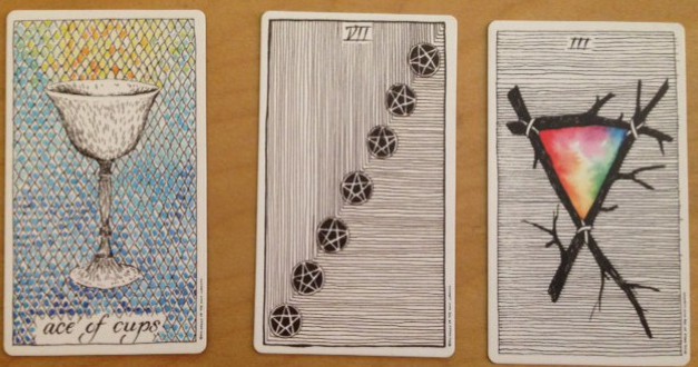 There are so many wonderful methods of looking at 3 cards together – depending on your focus. I am learning that asking questions or having a focus when looking at Tarot really helps the cards come alive and become part of our journey.