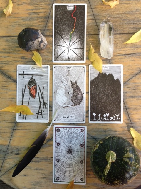 The great symbol of balance in the Tarot is Trump 8, Justice. The Wild Unknown Tarot uses a picture of a black cat and white cat separated by a sword. True justice in the “real” world (meaning the natural world!) is that all things will find balance. Each opposite has its complement, and these pairs create all forms of balance. This is akin to the concept of karma. What comes around, goes around.